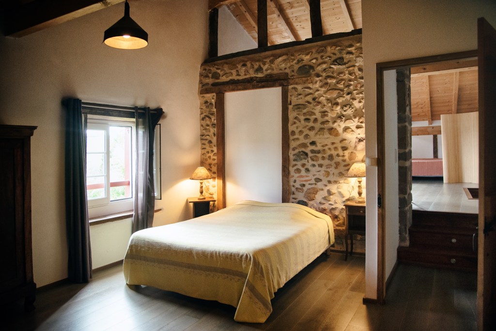 La suite, qui occupe tout le deuxième étage de la maison, est composée de plusieurs espaces de couchage et de vie, et peut accueillir de 1 à 5 personnes.