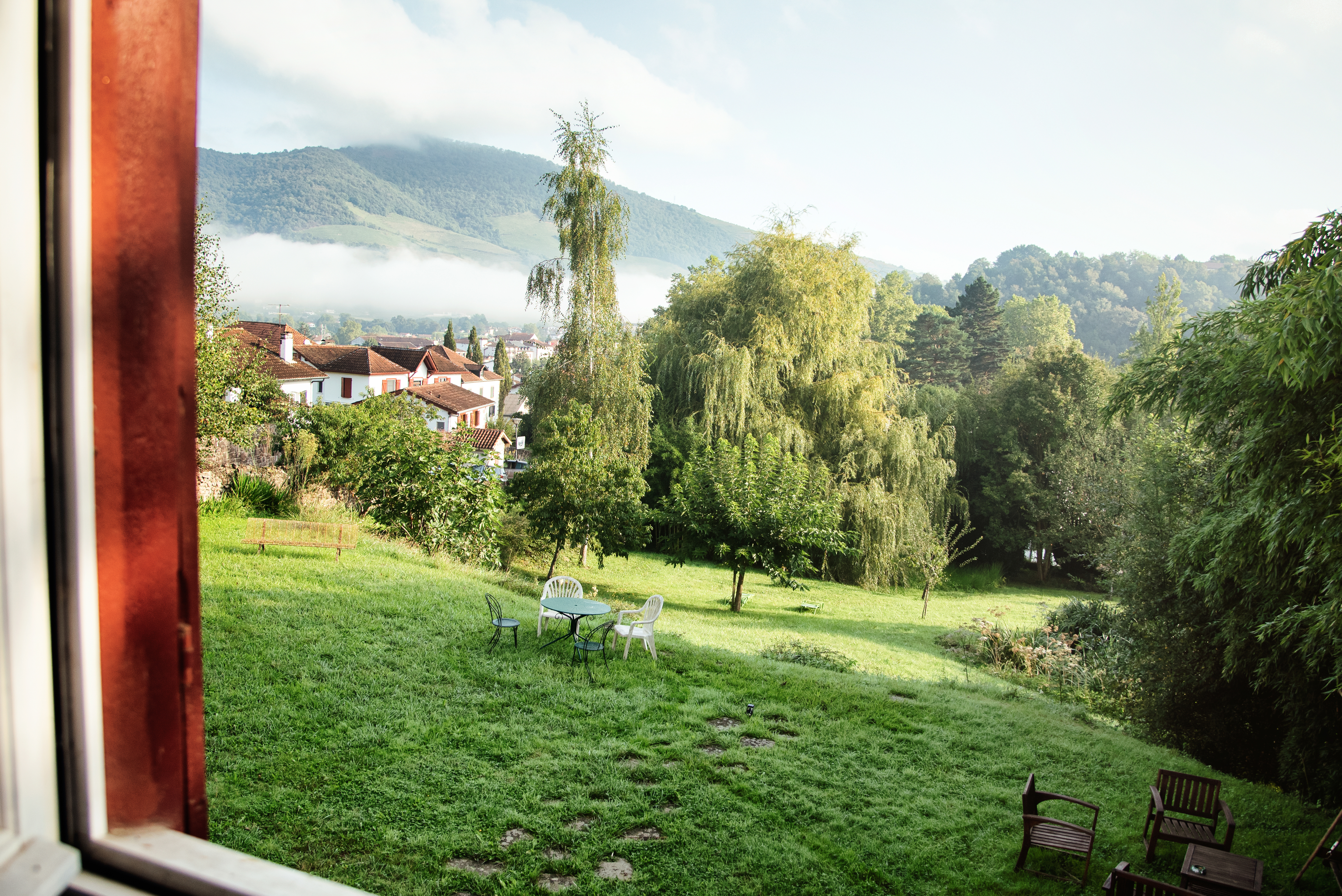 Le grand jardin arboré, autour de la maison, compte de multiples recoins et espaces de détente. Il est partagé avec notre famille puisque nous habitons aussi la partie mitoyenne de la Maison, dont l’entrée est entièrement indépendante. Cependant, toute l’esplanade devant la maison vous est réservée.